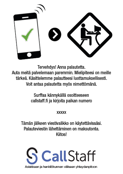 Call Staff palvelua on asiakasystävällinen ratkaisu palaute kanavaksi asiakkaan ja yrityksen välillä